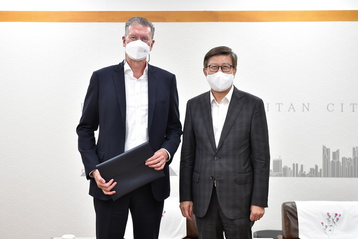 디어크 루카트 주한유럽상공회의소(ECCK) 회장은 박형준 부산시장의 취임을 축하하며, 그간 주한유럽상공회의소의 주요활동을 소개하고 한국과 EU의 우호적 관계 지속과 더불어 앞으로 부산과의 경제 협력관계의 중요성을 강조했다.