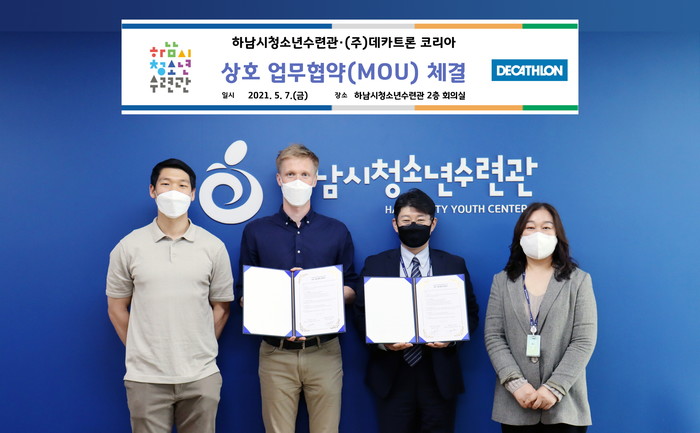 [하남시=세계타임즈 이영진 기자] 하남시청소년수련관(관장 조재영, 이하 수련관)은 7일 세계 1위 종합 스포츠 브랜드 “(주)데카트론 코리아(대표이사 스테판파트리스가이, 이하 데카트론)와 업무협약을 체결했다.