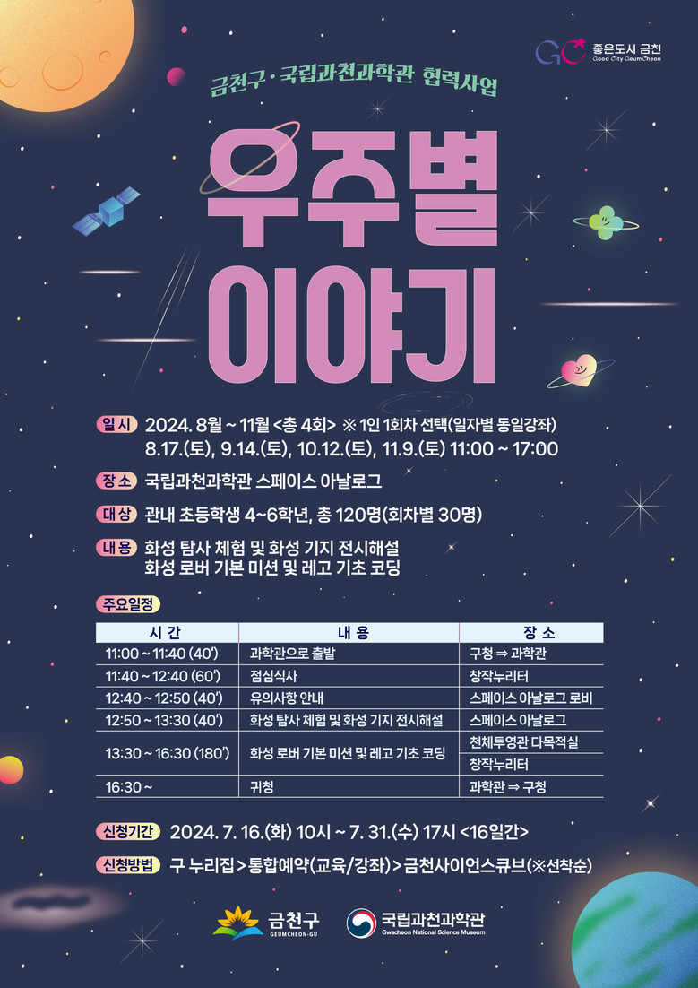 지난 5월, 금천구와 국립과천과학관(관장 한형주)은 과학문화 확산을 위한 업무협약을 체결했고 협약사업의 일환으로 ‘우주별 이야기’ 프로그램을 운영한다.