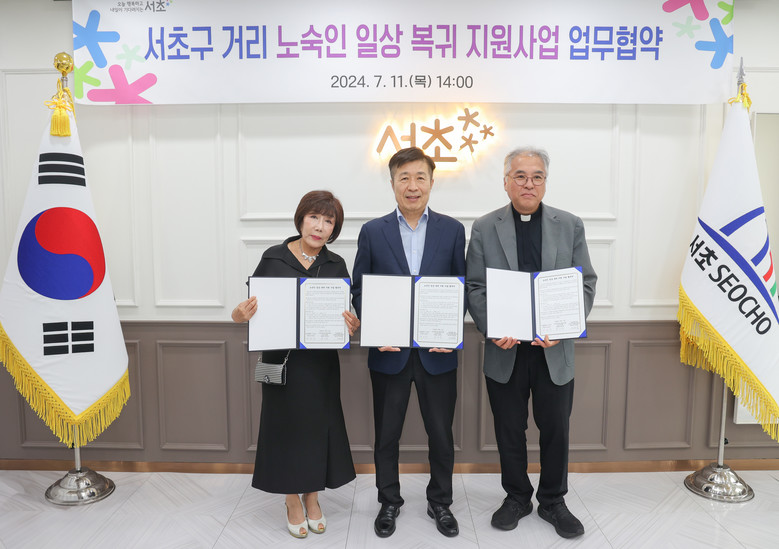 - 서초구, 노숙인 일상복귀 지원 위해 11일 서초구청에서 (사)대한미용사회중앙회 서초구지회, 서울특별시립 다시서기종합지원센터와 업무협약 체결