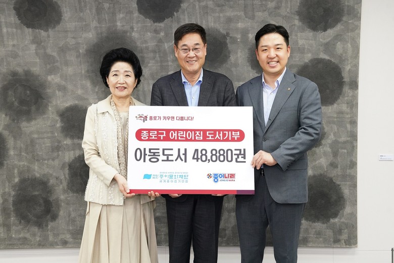 [종로구 세계타임즈=이장성 기자] 종로구(구청장 정문헌)가 7월 8일 종이문화재단(이사장 노영혜) 및 ㈜종이나라(총괄사장 정규일)로부터 아동도서 4만 8880권을 후원받았다.