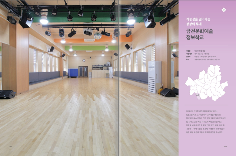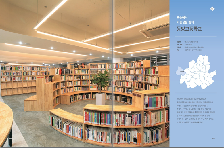 백서에 담긴 학교공간 재구조화 사업은 학교 도서관 문화시설, 초등 ‧ 중등 꿈을 담은 교실, 특수학급 공간혁신, 협력종합예술활동 공간, 학점제형 교육공간, 다양한 모델개발 등 7개 분야로 서울시교육청이 선도적으로 추진하였다.