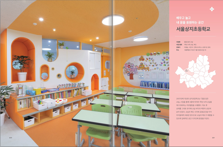 ◦ 꿈을 담은 교실: 학교구성원과 함께 노후교실을 미래교육과 사회적 변화 요구를 반영하여 창의적‧감성적 공간으로 변화하는 종합 디자인 사업 [서울 세계타임즈=이장성 기자] 서울특별시교육청(교육감 조희연)은 2022년 학교공간 재구조화 꿈을 담은 교실 백서 『학교, 고운 꿈을 담다』를 발간했다고 밝혔다.