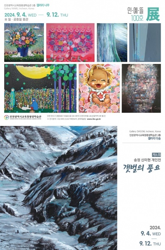 갤러리 ‘나무’에서는 인천 문화 발전을 위해 모인 ‘인예뜰’의 회원전으로, 작가들의 개성을 담아 다양한 색채와 기법으로 표현된 서양화 작품을 전시한다. 갤러리 ‘다솜’에서는 풍요로운 갯벌의 내면을 그린 전시로, 환경보호의 의미를 담은 작품들을 만나볼 수 있다.
