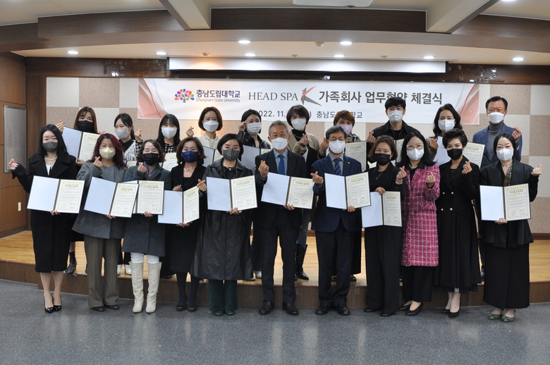 충남도립대학교는 23일 대학 본관에서 에코바이오의학연구소, 국제헤드스파협회, 헤드스파K 17개 지점 등 19개 뷰티기업과 가족회사를 체결했다고 밝혔다.