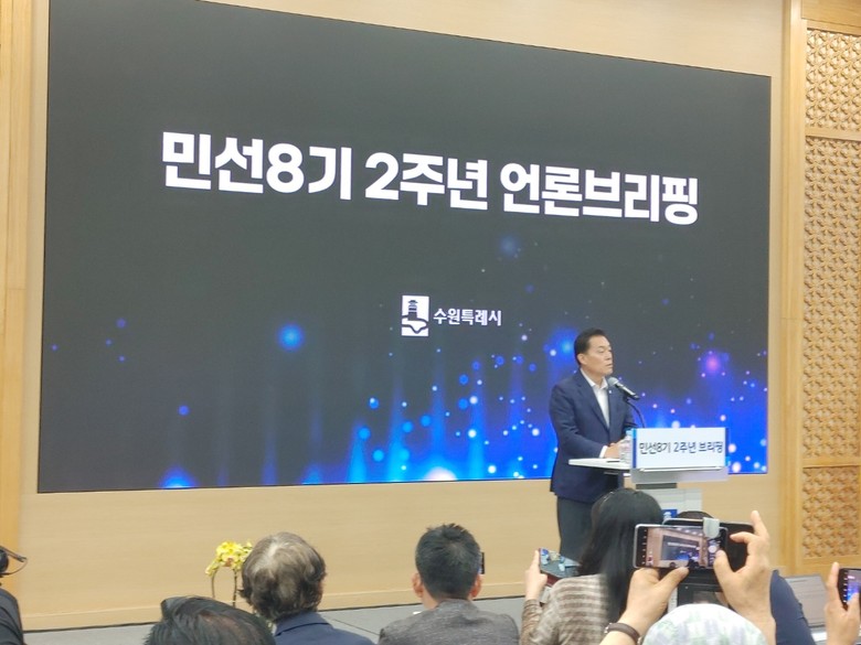 | ▲이재준 수원시장이 민선8기 2주년 브리핑에서 발언하고 있다 |