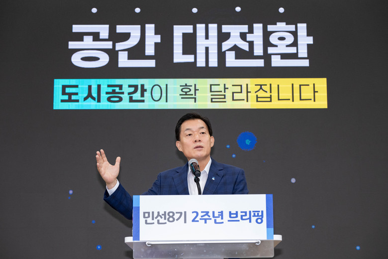 민선 8기 2주년을 맞아 8일 시청 중회의실에서 브리핑을 한 이재준 시장은 “광역철도망 구축, 도시정비사업으로 ‘공간’을 대전환하고, 첨단과학 연구도시를 조성해 ‘경제’를 대전환하고, 시민에게 꼭 필요한 것을 지원해 ‘생활’을 대전환하겠다”고 말했다.
