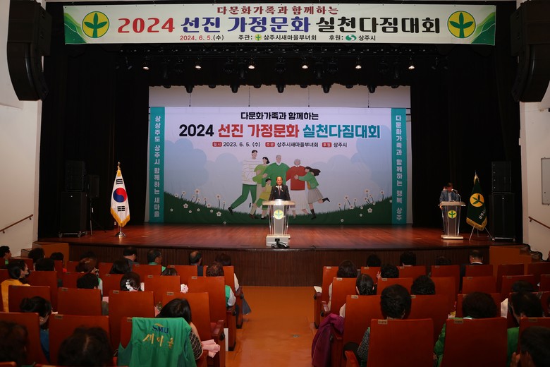 [상주시 세계타임즈=한윤석 기자] 상주시새마을부녀회(회장 김영애)에서는 6월 5일 10시, 문화회관 대공연장에서 강영석 상주시장을 비롯한 도.시의원 등 내빈과 새마을부녀회장 600여명이 참석한 가운데 ‘제27회 다문화 가족과 함께하는 선진 가정문화 실천다짐대회’를 개최했다.