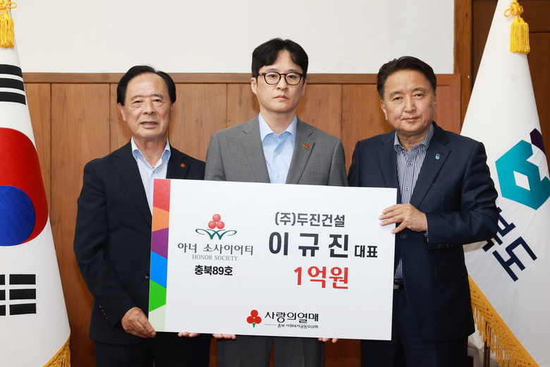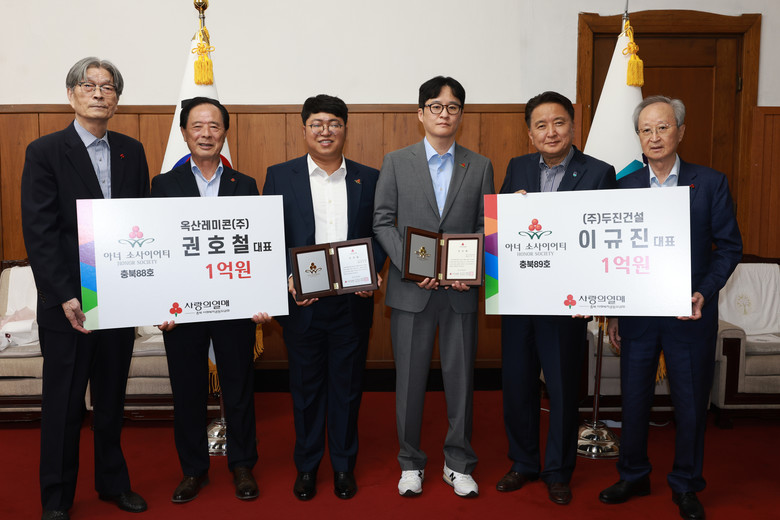 [충북 세계타임즈=이현진 기자] 충북사회복지공동모금회(회장 이민성, 이하 충북모금회)는 지난 14일(금), 옥산레미콘(주) 권호철 대표와 ㈜두진건설 이규진 대표가 각각 1억원의 약정기부를 약속하고 고액기부자 모임인 아너 소사이어티(Honor Society) 회원으로 동시가입하며 충북88호(전국 3421호), 충북89호(전국3422호)로 이름을 올리게 되었다고 밝혔다.