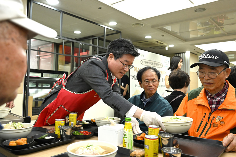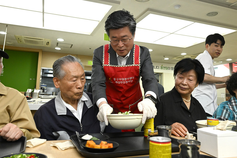 | ▲ 어르신들게 건강밥상을 전하는 김길성 중구청장 |