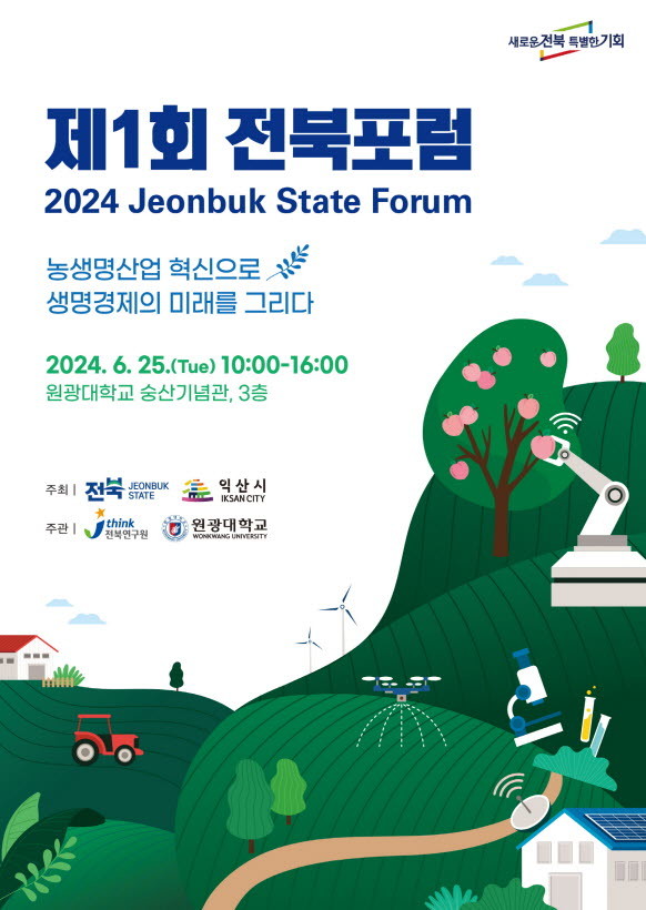 이번 포럼은 전북자치도와 익산시가 공동으로 주최하고, 전북연구원과 원광대학교가 주관하는 방식으로 열린다. '농생명산업 혁신으로 생명경제의 미래를 그리다'라는 주제로 전북자치도 특례 중심 실현 방안을 모색할 예정이다.