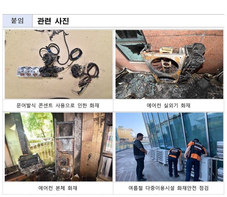 - 전기 접촉불량 등에 따른 냉방기기 화재 잦아… 가정 내 멀티탭‧전선 등 점검 필요