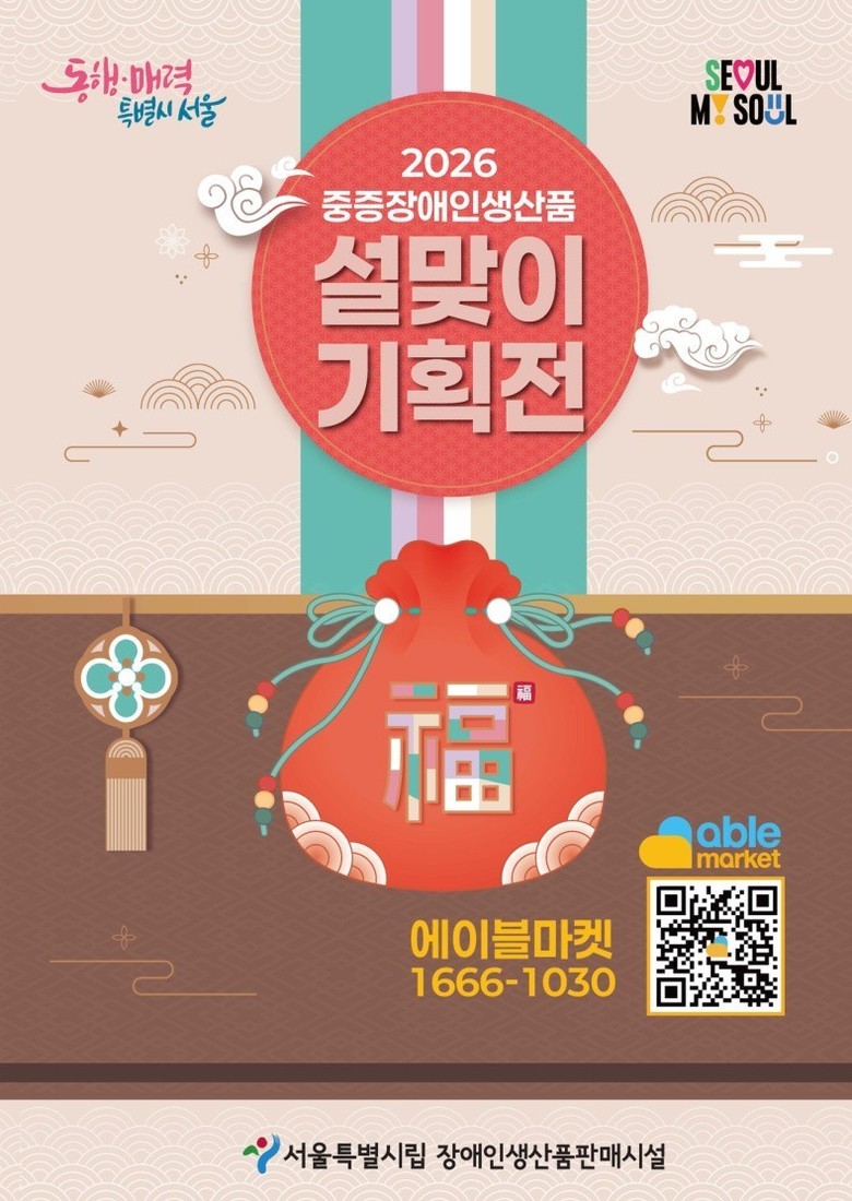 서울시와 시립장애인생산품판매시설에서 주최하는 「2026년 중증장애인생산품 설맞이 기획전」에서는 설날 답례품으로 적합한 12종 93개의 물품을 마련해 판매하고 있다.
