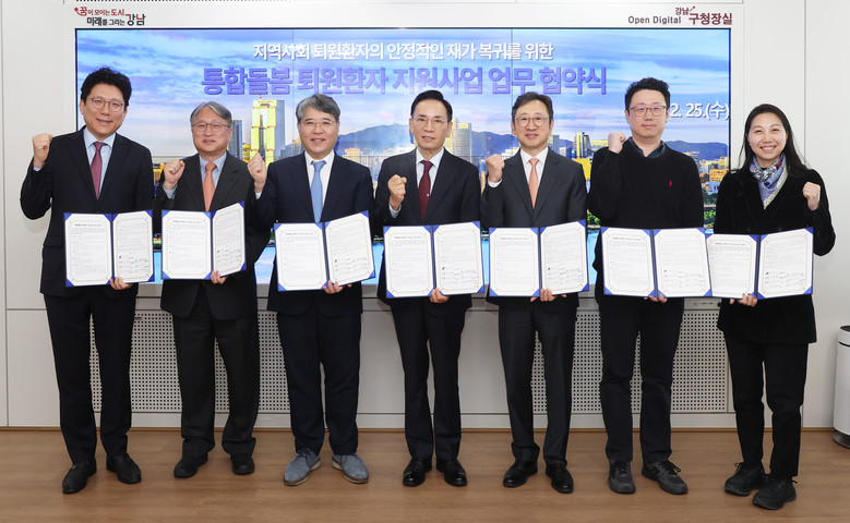 [강남구 세계타임즈=이장성 기자] 꿈이 모이는 도시, 미래를 그리는 강남구(구청장 조성명)가 퇴원 이후 돌봄 공백을 줄이고 지역사회 중심의 돌봄 체계를 강화하기 위해 2월 25일 구청에서 관내 6개 의료기관과 「통합돌봄 퇴원환자 지원사업」 추진을 위한 업무협약(MOU)을 체결했다. 협약 기관은 삼성서울병원, 연세대학교의과대학 강남세브란스병원, 강남베드로병원, 나누리병원, 메드렉스병원, 강남구립행복요양병원이다.