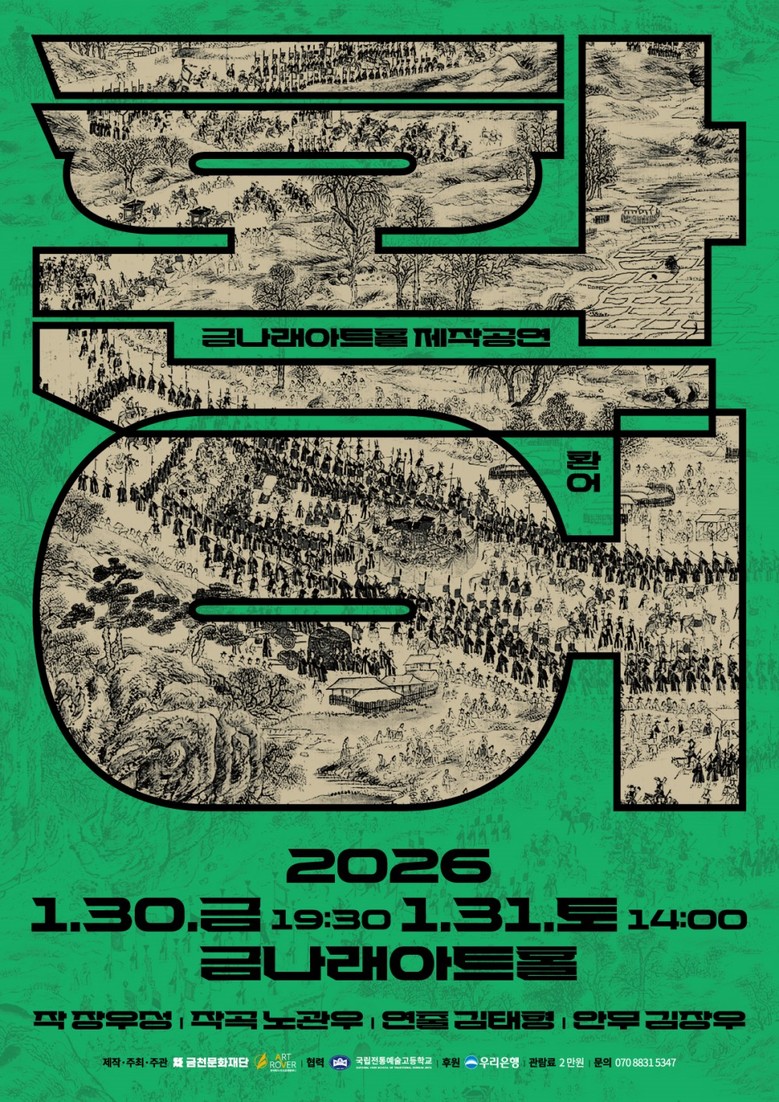 공연은 30일 오후 7시 30분과, 31일 오후 2시에 선보인다. 관람료는 전 석 2만 원이며, 금천문화재단 누리집 또는 놀(NOL) 티켓에서 예매할 수 있다.