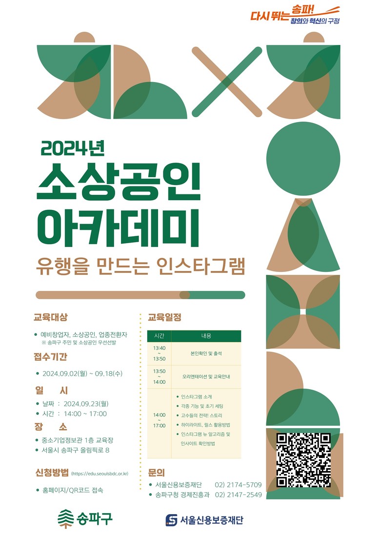교육은 오는 9월 23일 월요일 오후 2시부터 5시까지 송파구 상공회 중소기업 정보관에서 진행된다.