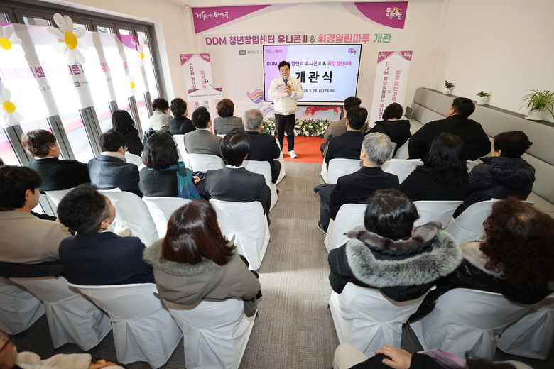 [동대문구 세계타임즈=이장성 기자] 서울 동대문구(구청장 이필형)는 28일 청년 창업 지원과 주민 생활 문화 기능을 결합한 복합시설 ‘DDM 청년창업센터 유니콘Ⅱ·휘경열린마루’ 개관식을 열고 본격적인 운영에 들어갔다.