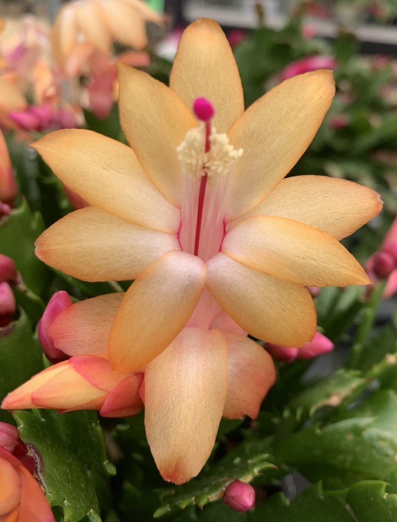 게발선인장은 브라질 열대우림이 원산지인 식물로, 나무나 바위에 붙어 자라며 겨울철에도 꽃을 피운다.