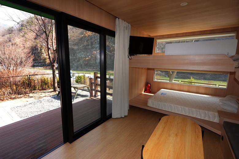 | ▲ 청량산 수원캠핑장 카라반 내부 모습. |