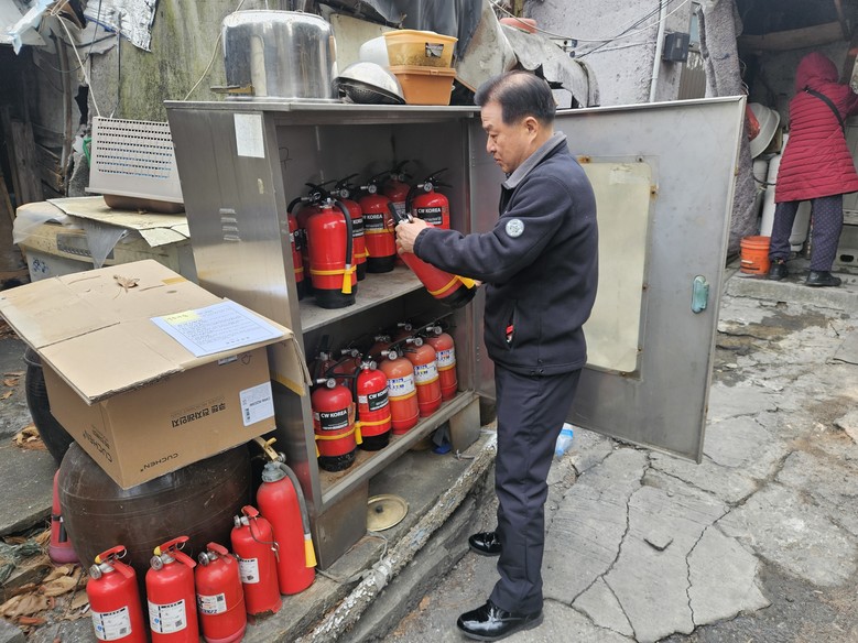 | ▲ 설 연휴 전 구룡마을에서 소화기 점검 |