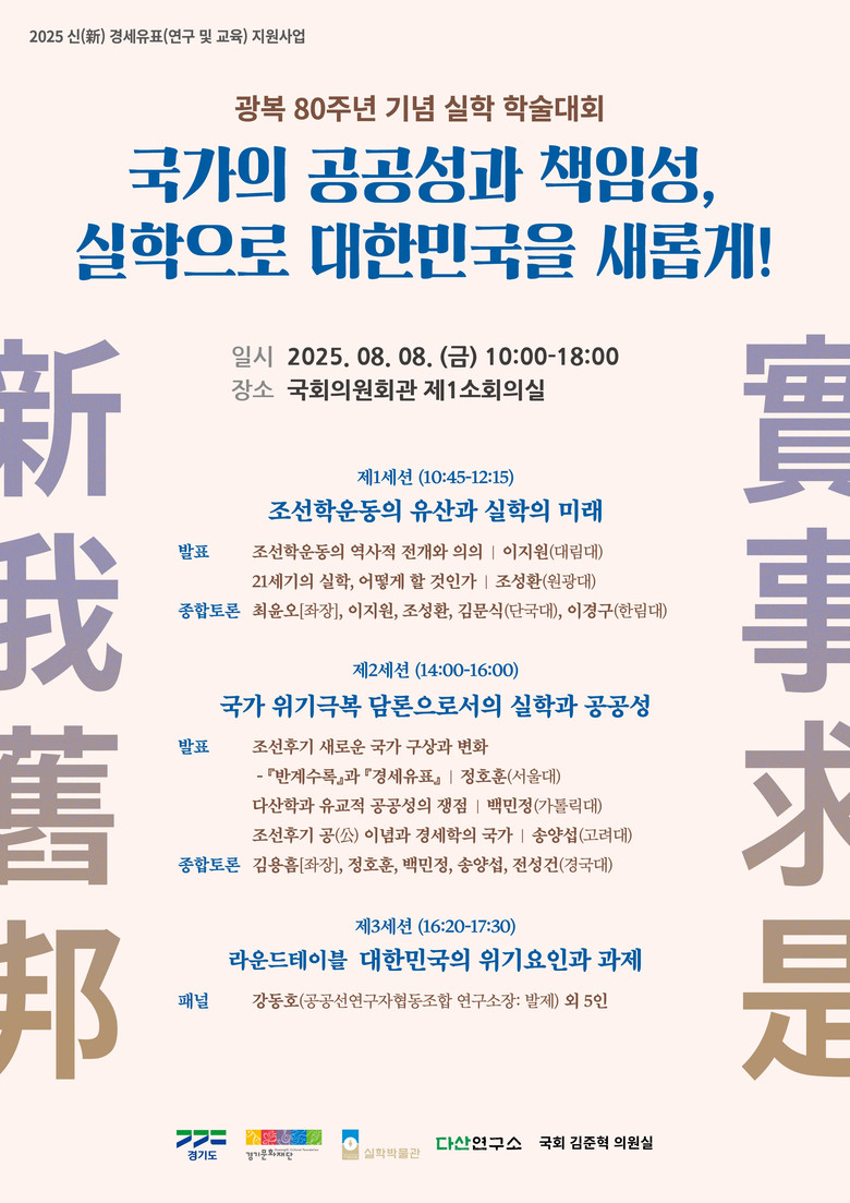 | ▲광복 80주년 기념 실학 학술대회 홍보물.(사진=경기문화재단) |