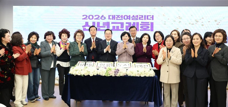 [대전 세계타임즈=이채봉 기자] 대전시는 27일 대전테크노파크 디스테이션에서 이장우 시장, 조원휘 대전시의회 의장, 여성단체 회장단, 관내 유관기관장 등 150여 명이 참석한 가운데 2026년 대전 여성리더 신년교례회를 가졌다.