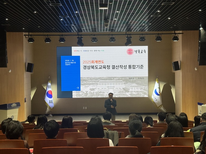 [경북 세계타임즈=한윤석 기자] 경북교육청(교육감 임종식) 16일 본청 연화관에서 본청, 직속기관, 교육지원청 등 50개 기관(부서) 결산업무 담당자 80여 명을 대상으로 ‘2025회계연도 경상북도교육청 결산 작성 통합 기준 전달 회의’를 개최했다.