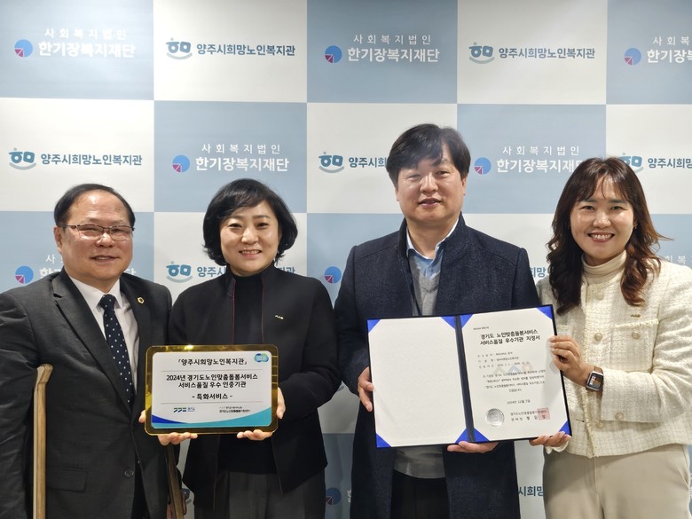 경기도 노인맞춤돌봄·응급안전안심서비스 우수 수행기관 인증제는 경기도 내 수행기관 중 경기도형 서비스 품질관리 기준선을 유지하고, 우수 사례 확산이 가능한 기관을 선정하는 제도이다. 2024년에는 노인맞춤돌봄서비스사업 수행기관 8개소, 응급안전안심서비스사업 수행기관 2개소 등 총 10개 기관이 선정됐다. 양주시희망노인복지관은 ‘특화서비스 분야’에서 우수 수행기관으로 선정돼 이날 인증서 전달 및 현판식이 진행됐다.