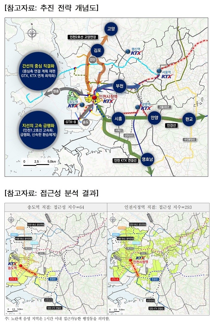 전략 사업 추진 시 광역 접근성은 기존 계획 대비 약 4.6배 향상되고, 도시철도 급행화를 통해 평균 7~18분의 통행시간 단축 효과도 기대된다. 인천이 관문도시를 넘어 수도권과 전국을 연결하는 핵심 거점으로 도시 위상을 전환하는 계기가 될 수 있다