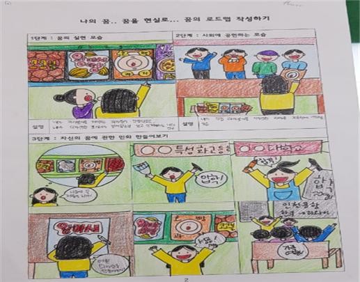 이번 행사는 2학년은 1교시 나의 꿈과 진로계획 작성하기, 2-3교시 꿈의 로드맵 그리기, 4교시에는 모든 학생들 앞에서 나의 진로 로드맵을 발표하는 시간으로 운영하였으며,