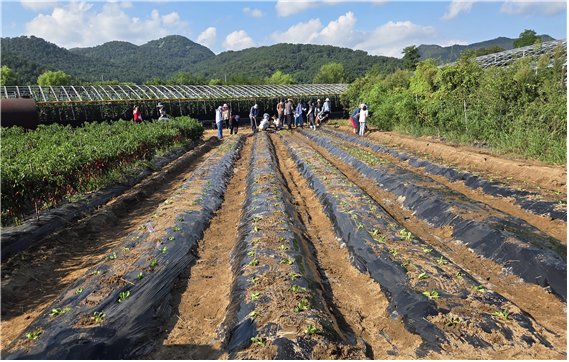 ▲ "2025년 하반기 영농 드림팀 정착지원 교육(귀농귀촌 33기) 교육생들이 현장 텃밭 실습을 통해 정식부터 수확까지 전 과정을 직접 경험하며 배추와 무를 재배하는 모습 |