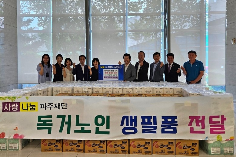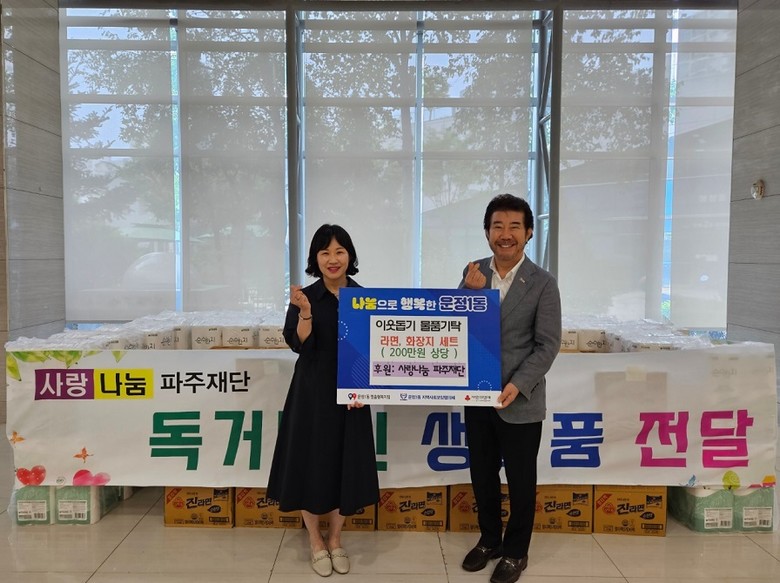 이날 사랑나눔 파주재단에서는 운정1동 행정복지센터를 방문해 어려운 이웃들에게 전달해 달라며 라면과 화장지 세트 등 물품을 전달했다. 기탁된 물품은 관내 저소득 홀몸 어르신 및 취약계층에게 지원될 예정이다.