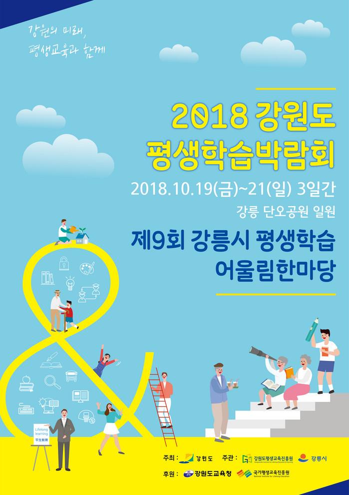 [강원도=세계타임즈 김민석 기자] 강원도평생교육진흥원(원장 : 육동한)과 강릉시(시장 : 김한근)는 오는 10월 19일(금)부터 3일간 강릉 단오공원 일원에서 「2018 강원도 평생학습박람회 & 제9회 강릉시 평생학습어울림한마당」을 공동으로 개최한다.