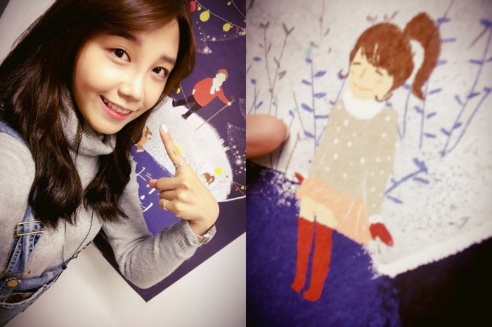 정은지는 이어 "여기 포스터 속 귀여운 소녀가 바로 저에요! 귀엽죠? 우리 모두 24일에 상명대에서 만나요"라고 허각 콘서트 포스터 속 여자아이가 자신이라고 소개했다.