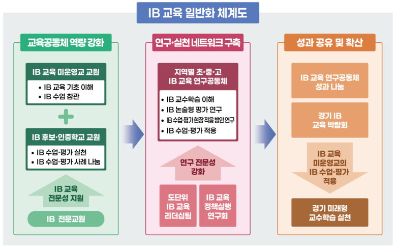 특히 ‘IB 전문교원’과 ‘IB 월드스쿨(인증학교)’를 핵심 실행 기반으로 삼아 ‘IB 교육’의 일반화에 나선다.