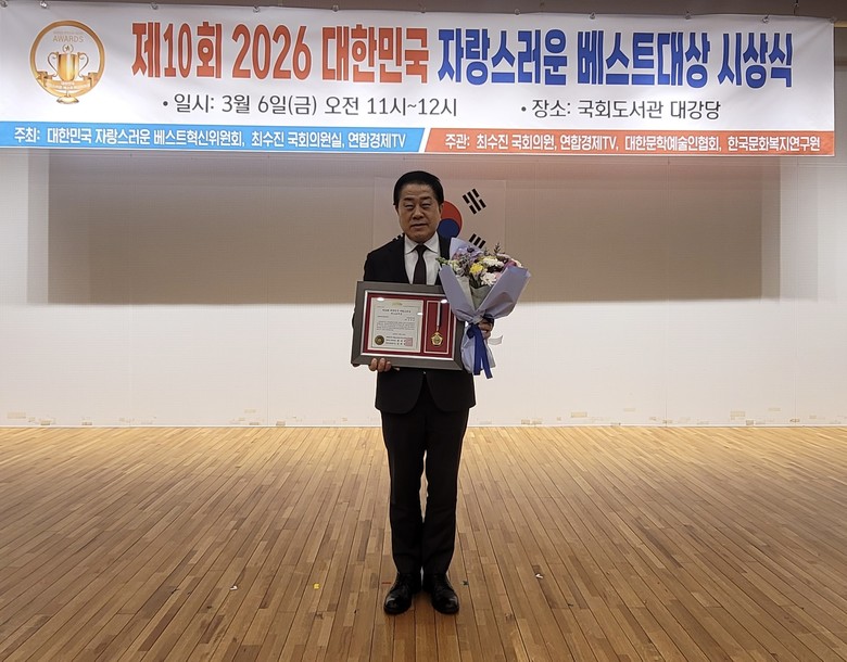 ‘대한민국 자랑스러운 베스트대상’은 각 분야에서 국가와 지역사회 발전에 기여한 인물들을 선정해 시상하는 행사로, 올해로 10회를 맞았다. 이번 시상식은 대한민국 자랑스러운 베스트혁신위원회와 연합경제TV가 공동 주최하고, 혁신국회혁신원과 연합경제TV가 주관해 개최됐다.