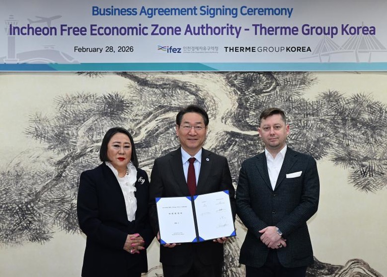인천경제자유구역청은 2월 28일 송도지타워에서 글로벌 웰니스 리조트 기업 테르메 그룹(Therme Group)과 ‘테르메 인천 프로젝트’ 추진을 위한 사업본협약을 체결했다고 밝혔다.