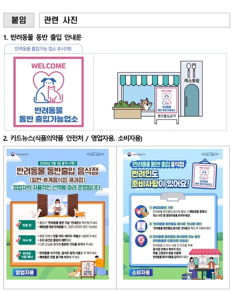 - 위생과 안전 강화된 제도로 반려인과 비반려인 모두가 함께하는 외식 환경 조성 - [인천 세계타임즈=심하린 기자] 인천광역시(시장 유정복)는 2026년 3월 1일부터 “반려동물 동반출입 음식점 제도”를 본격 시행했다고 밝혔다.