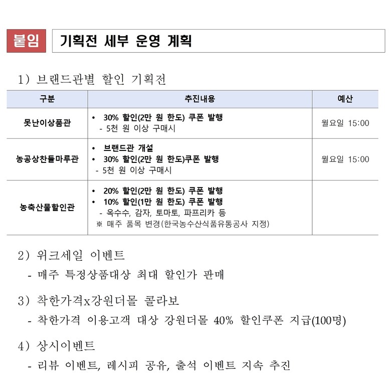 이번 기획전은 정부의 민생경제 회복 기조와 도내 소상공인 매출 확대 정책에 발맞춰 기획됐다. 브랜드관별 10~30% 할인쿠폰을 제공하며, 주간별 특정 상품을 대상으로 최대 할인가를 적용하는 ‘위크세일 이벤트’도 함께 진행된다.