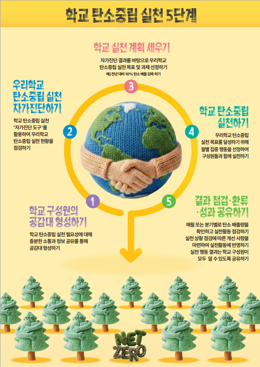 이번 추진 계획은 2025년부터 시행해 온 ‘모든 학교에서의 탄소제로 실천’을 한 단계 발전시킨 것으로, 학교가 스스로 탄소중립 실천 수준을 점검하고 계획을 수립한 뒤, 실천 결과를 다시 점검하는‘진단–계획–실천–환류’의 방식으로 운영된다. 이를 통해 학교의 탄소중립 실천이 일회성 활동에 그치지 않고, 학교 운영 전반에 걸쳐 지속적으로 이어질 수 있는 기반을 마련하는 데 목적이 있다.
