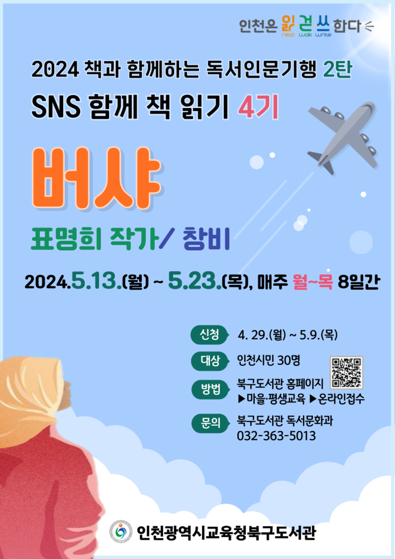 북구도서관 관계자는 “「버샤」를 함께 읽고 쓰며 서로 소통하는 기회가 되길 바라며, 인천 배경의 작품을 함께 읽걷쓰하면서 우리 지역에 대해 더욱 이해하는 기회가 되길 바란다”고 말했다.