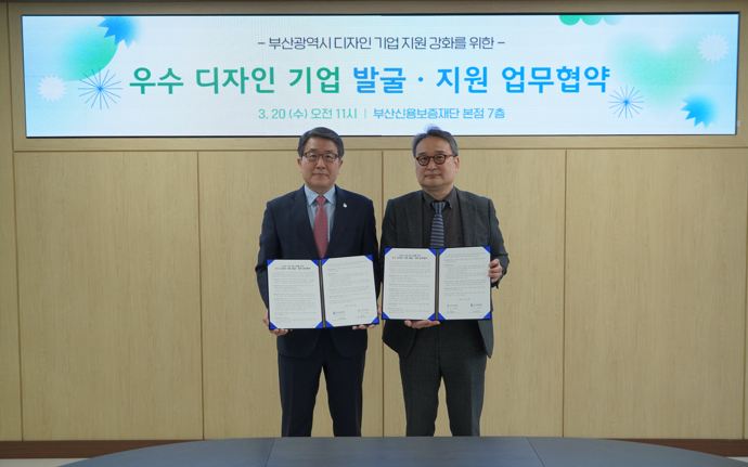 부산디자인진흥원(원장 강필현)과 부산신용보증재단(이사장 성동화)은 부산 디자인기업 지원을 강화하기 위해 ‘우수 디자인 기업 발굴.지원 협력체계 구축 업무협약’을 체결했다고 22일 밝혔다.