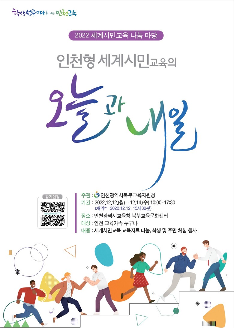 [인천 세계타임즈=심하린 기자] 인천북부교육지원청(교육장 박미자)은 ‘인천형 세계시민교육의 오늘과 내일’을 주제로 「세계시민교육 나눔 마당」 행사를 12일부터 인천광역시교육청 북부교육문화센터에서 개최한다.