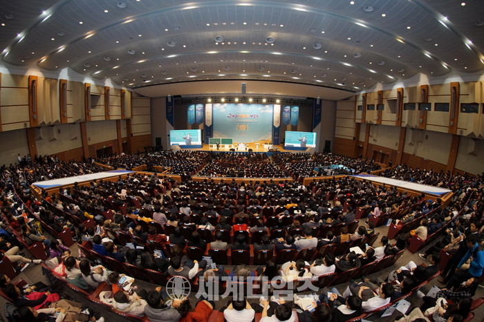 | ▲ 지난 19일 제주도 서귀포시 국제컨벤션센터에서 열린 신천지 '주 재림과 추수확인 대집회' |