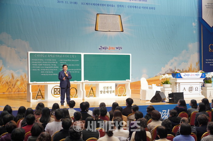 [세계타임즈 이정술 기자] ‘전국 순회 말씀대집회’와 연 10만 명의 새 신자를 의미하는 ‘10만 수료’로 세계적 이목을 집중시킨 신천지예수교 증거장막성전(총회장 이만희‧이하 신천지예수교회)이 제주도에서 말씀대집회를 성황리에 개최했다.