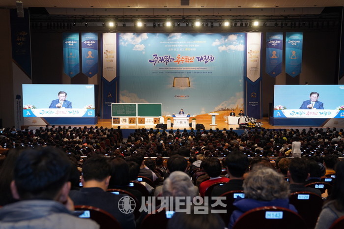 신천지예수교회는 지난 19일 저녁 제주 서귀포시 국제컨벤션센터에서 ‘주 재림과 추수확인 대집회’를 개최, 현장에는 교단 목회자, 신학생, 제주도민 등 2,000여 명이 참석했다.