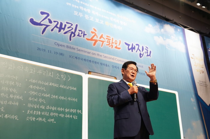 | ▲ 신천지 이만희 총회장이 제주에서 말씀 대집회를 직접 주관하고 있다 |