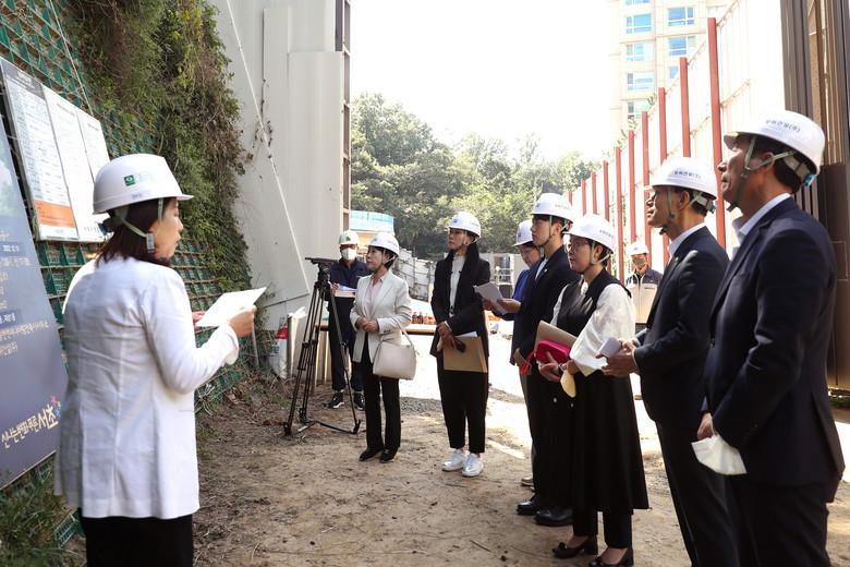 오전에는 행정복지위원회(위원장 고선재)가 제1차 정례회 안건으로 제출된 ‘방배숲도서관 관리운영 민간위탁에 따른 동의안’ 심사에 앞서 도서관 건립 현장을 방문했다. 소속 위원들은 관계자로부터 공사 진행 현황 및 향후 일정을 청취한 뒤, 현장 곳곳을 면밀히 시찰했다. ‘자연 친화적 숲속도서관’으로 꾸며질 방배숲도서관은 연면적 1,584㎡, 지하 2층, 지상 1층의 규모로 오는 2023년 5월 개관 예정이다.