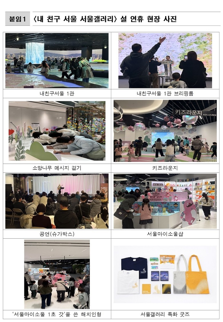 시는 설 연휴를 맞아 14일(토)부터 18일(수)까지(17일 제외) 시민과 국내외 관광객 누구나 방문하여 즐길 수 있는 다채로운 콘텐츠로 서울갤러리를 가득 채웠다고 밝혔다.