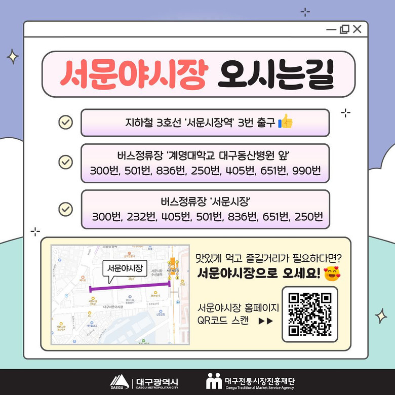 * 2025년 서문야시장(금·토·일), 칠성야시장(월·목·금·토·일)
